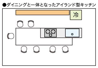 リビング・ダイニングと対面で接しているため、調理をしながら家族とコミュニケーションを取りやすいでしょう。またホームパーティや料理教室など、キッチンを大人数で囲む機会が多い方にとって使いやすいタイプです。