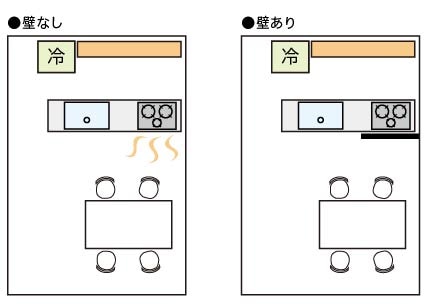 - 冷蔵庫とシンクの間には、幅30センチメートル程の作業台を設置する