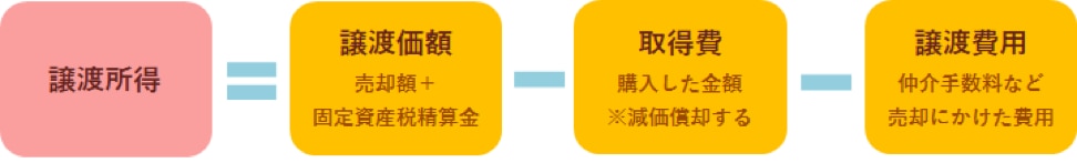 不動産を売却した際の利益は「譲渡所得」と呼ばれます。譲渡所得は「譲渡価額(家を売った金額)」から「取得費(家を買った金額)」と「譲渡費用(仲介手数料などの家の売却にかかった諸費用)」を差し引いた金額です。