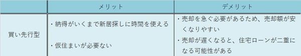 「買い先行型」は、新居の購入を優先する住み替え方法です。新居を決める時期の期限がないため、納得のいくまでじっくりと物件を選べます。また、仮住まいを利用する必要のないことがメリットです。