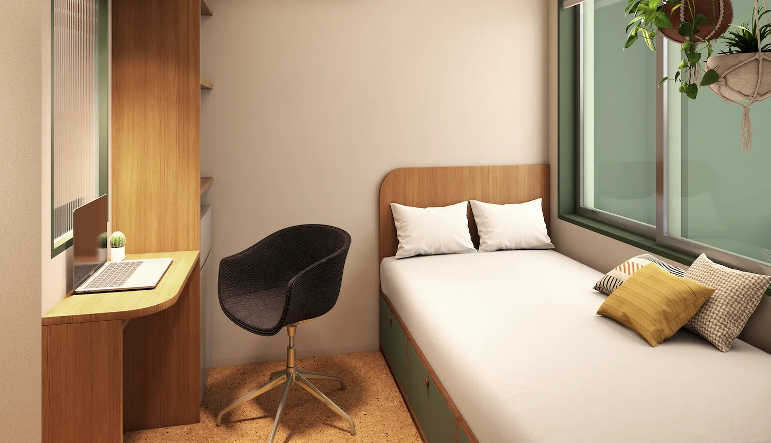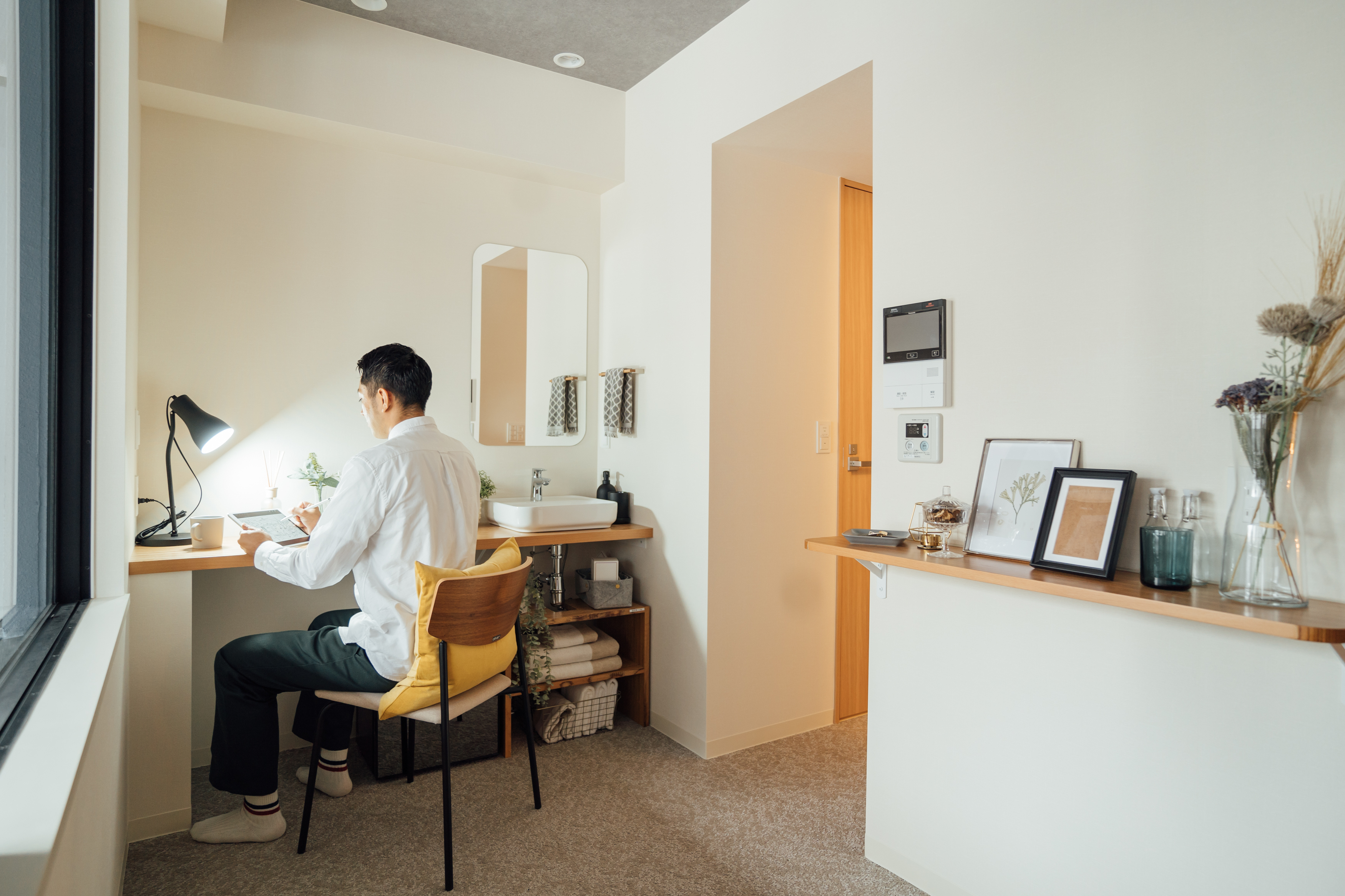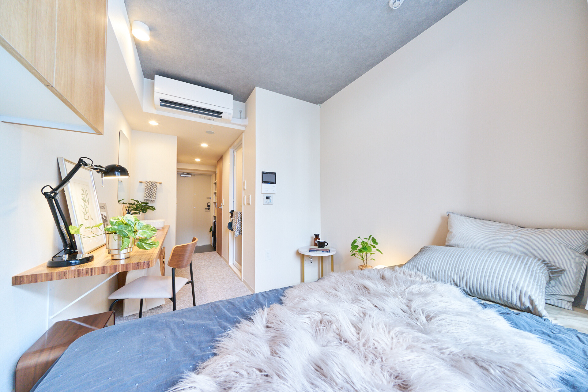 通常タイプでは、マットレス、机、椅子、冷蔵庫をご用意しております。ご入居時にはリネン類とカーテンのみご準備いただければ、ご生活が可能です。