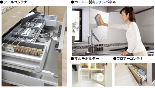 [特徴(2)]細部にまでこだわった水回り設備使い勝手の良さ、お手入れのしやすさを考慮した快適設備を取り入れました。ミセスの視点を大切にしたキッチンや、新提案の水まわり設備など、細やかに快適な空間を造りあげています。