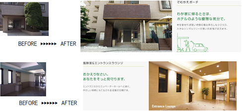 今回共用部分の改修にあたっては、多数の大規模修繕工事の経験を持つ大和ライフネクストが各種設備の改修工事を実施したほか、今後の長期修繕計画を改めて作成し、資金計画に反映しております。一棟リノベーションマンション分譲の実績もあるコスモスイニシアのノウハウに加え、分譲後の管理の実績や入居後のお客様の声など、管理会社ならではの視点を改修計画に反映するなどお客様に長く安心してお住まいいただけるよう配慮しております。