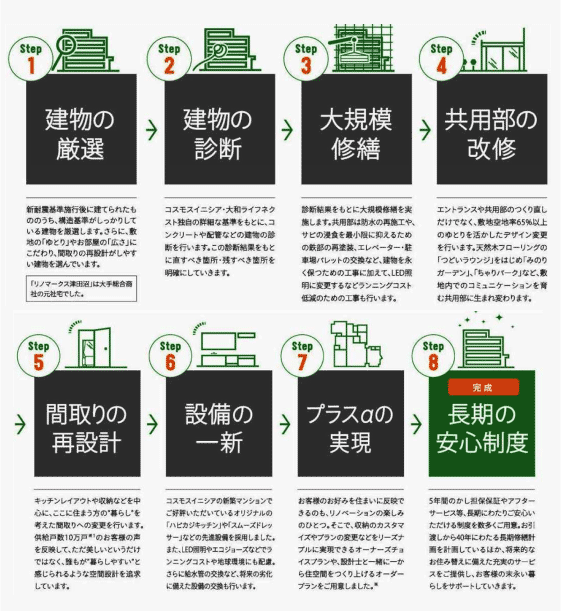 株式会社コスモスイニシア(本社:東京都港区、社長:高木 嘉幸、HP:http://www.cigr.co.jp/)が、大和ライフネクスト株式会社(本社:東京都港区、社長:渡邉 好則、HP:http://www.daiwalifenext.co.jp/)との共同事業第一号として展開している一棟リノベーションマンション「リノマークス津田沼」