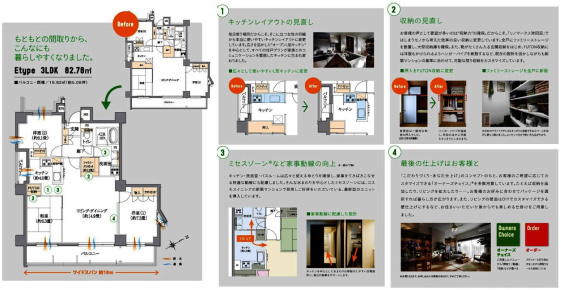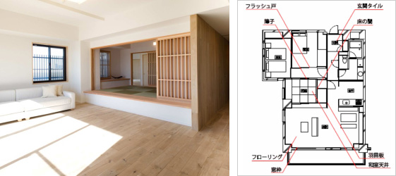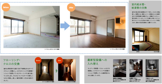 「リノマークス津田沼」では、暮らしやすい住空間作りのための2つの新しい取り組みを提案しています。 1.入居後の生活まで見通した一棟リノベーションマンションの提案