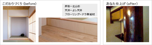 ●コスモスイニシアが提案する“こだわりづくり”と生活者による“あなた仕上げ”の事例 キーワード「磨く」 北山杉、よし天井