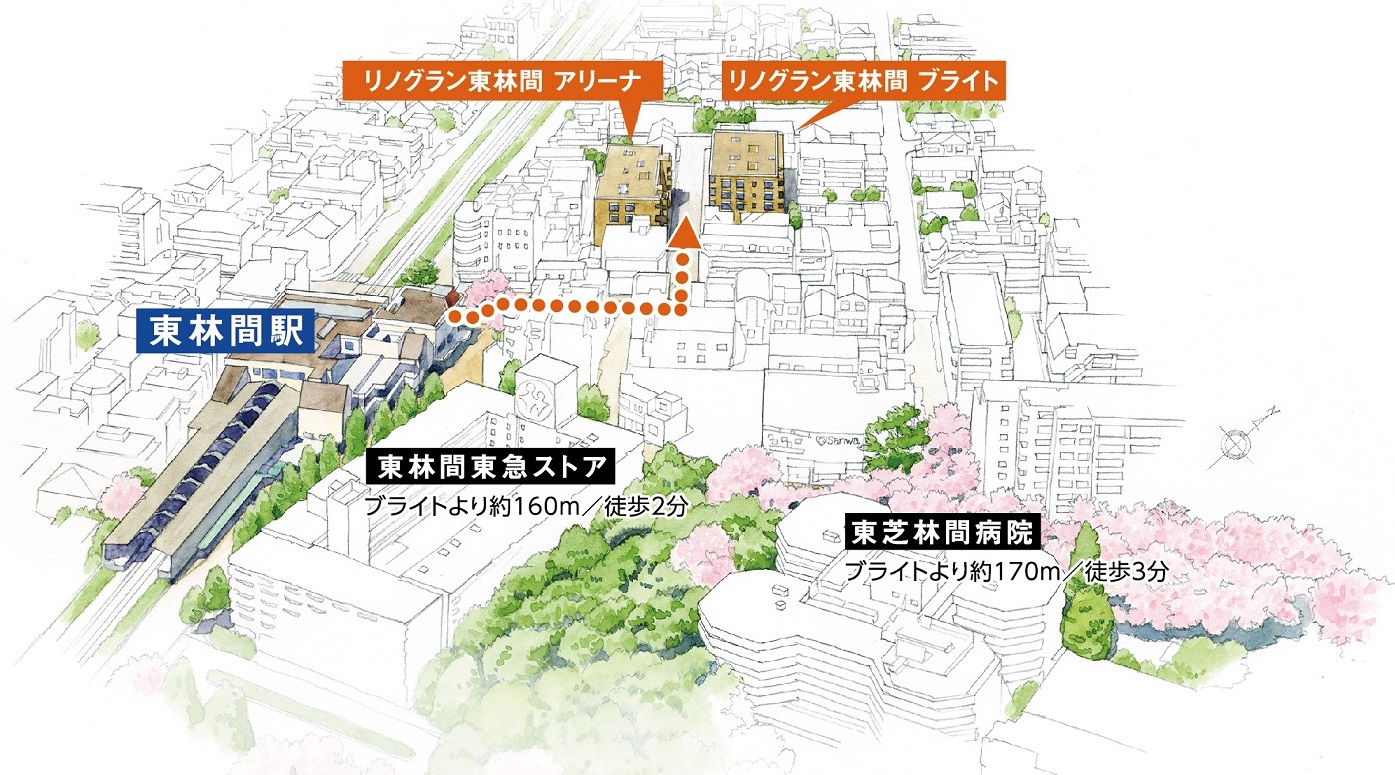 最寄りの小田急江ノ島線「東林間」駅から徒歩2分(約120m)に加え、周辺にはスーパーや病院などの生活利便施設を備えた立地でありながら、周囲には穏やかな住宅街が広がる点がお客さまから高く評価されました。