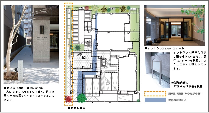 根津エリアでは、まち並み景観づくりに関わるさまざまな取組みや活動が展開されています。「根津にとって路地は、まちの特徴のひとつ」であることから、当社は、根津宮永町会の一画に本マンション計画を進めるにあたり、これまであった路地をマンション建設後にも残し、地域住民の憩いの場となるように、周辺住民のみなさまとともに話し合いを進めてまいりました。