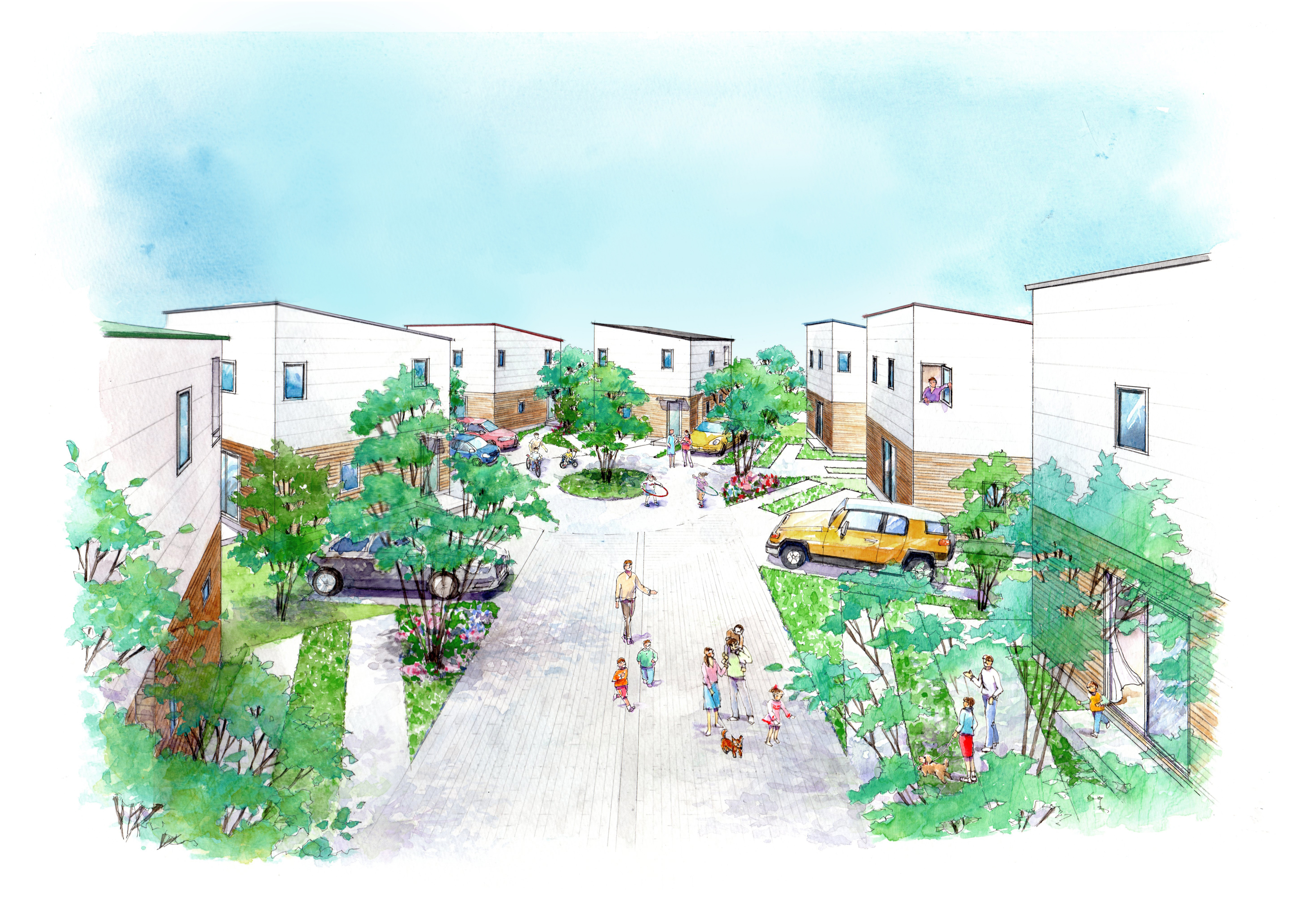 街並みの奥にはトネリコサークル(袋小路)を設け、自然に人が集まったり、子ども達が遊んだりするコモンスペースとなります。ワークショップやバーベキューなどのイベントを企画し、入居者同士の交流をはかります。