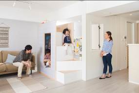 ・暮らしに合わせて可変できるフレキシブルリビング、しまうモノから発想した彩収納、FUTON収納を採用