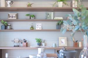 家族の思い出や大切なコレクション、趣味の作品、季節の変化を愉しむ植物などのこだわりのものを、飾る・見せる設えとして棚やギャラリーウォールを設置しています。