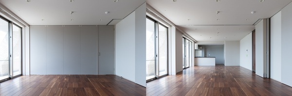 東京都渋谷区幡ヶ谷に建設された新築分譲マンション。大きな空間を扉や引戸で仕切ることによって住まい手が自由に場の用途や動線を選択し、デザインできる住空間を実現したプロジェクト。