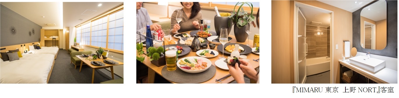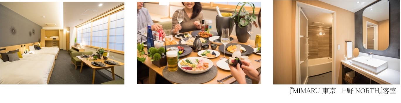 「APARTMENT HOTEL MIMARU(HP:https://mimaruhotels.com/)」は、キッチンやリビング・ダイニングスペースを備え、4名以上のグループでの旅行でも快適に過ごせる都市型アパートメントホテルです。宿泊ホテル周辺の観光情報やレストラン情報など、多彩な体験をお楽しみいただくための情報を提供しており、「室内が広く、ダイニングスペースではリラックスできた」「キッチンには調理器具が充実していて、外食・内食を使い分けて旅行が楽しめた」など、国内外を問わず、多くのお客さまから高い評価をいただいています。