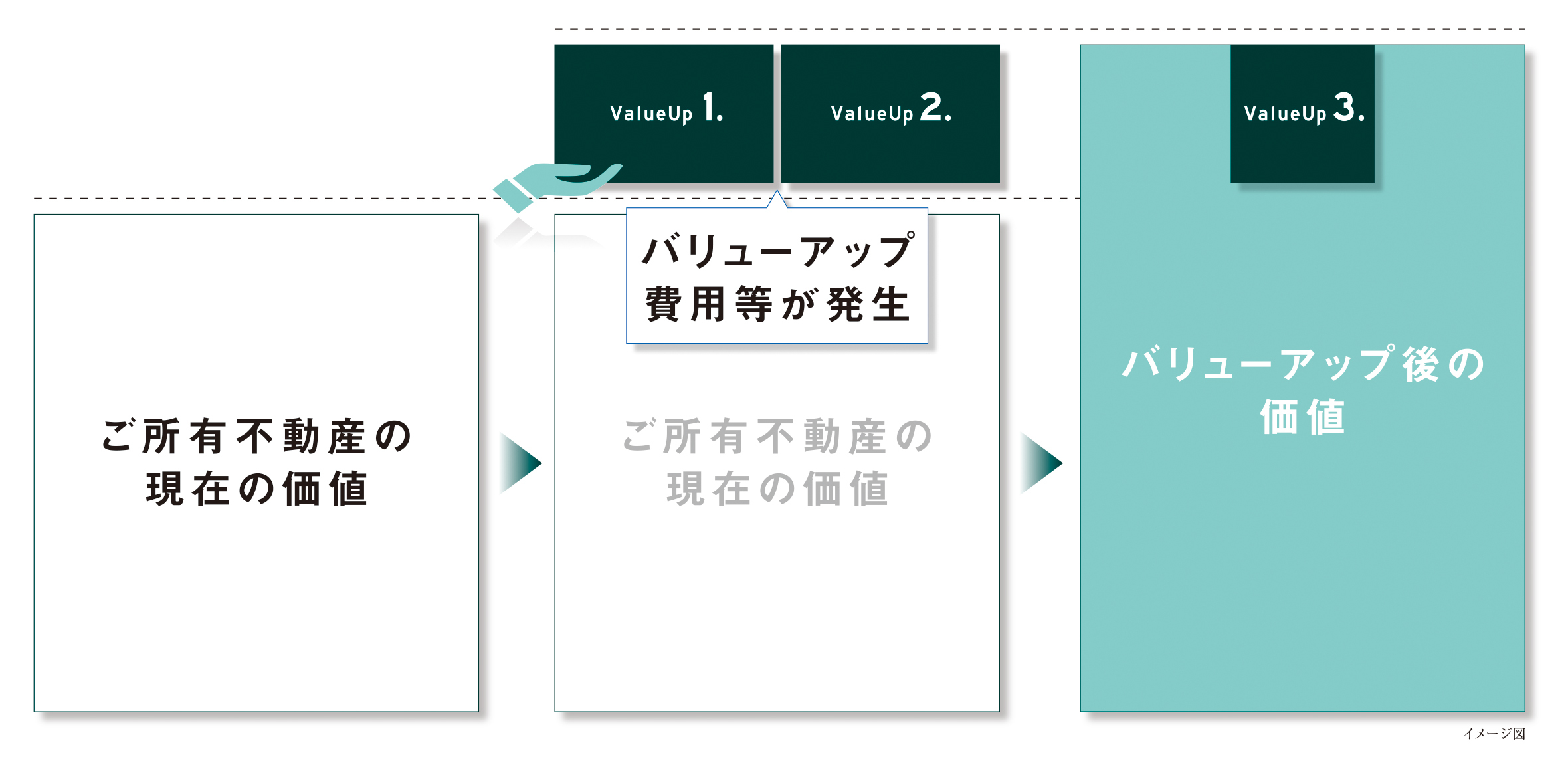 ※不動産売買の仲介とバリューアップコンサルティングを組み合わせたサービスは、不動産業界では初めてのサービスです(2019年5月当社調べ)。