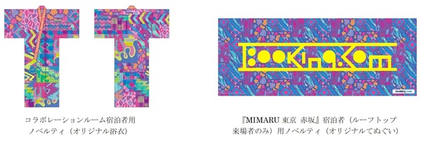 コラボレーションルーム宿泊者には、「KAWAII Japanese Room – Addicted to TOKYO」限定の浴衣をご用意しており、お持ち帰りいただき世界に数少ないこの浴衣をさまざまなシーンで楽しんでいただくことが可能です。また、期間中に『MIMARU東京 赤坂』に宿泊された方はルーフトップに設置された異空間に足を運び入れることが可能で、増田セバスチャン氏のもう1つのアイコンであるキノコを大胆にあしらい、ビルに囲まれた東京のど真ん中で、カワイイを体験することができます。13日~15日の3日間、15:00~21:00の時間内にルーフトップにお越しいただくと、ノベルティとして1日先着100名にオリジナルてぬぐいをプレゼントします。