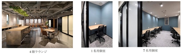 ・ 外部の人との打ち合わせでは6名まで使える広い会議室、少し込み入った打ち合わせでは隣の人との声が聞こえない距離を保ったミーティングスペース、カジュアルな打ち合わせや入居者同士の会話が生まれるハイテーブル、その他のスペースも他の人との一定距離を保てるような机を配置