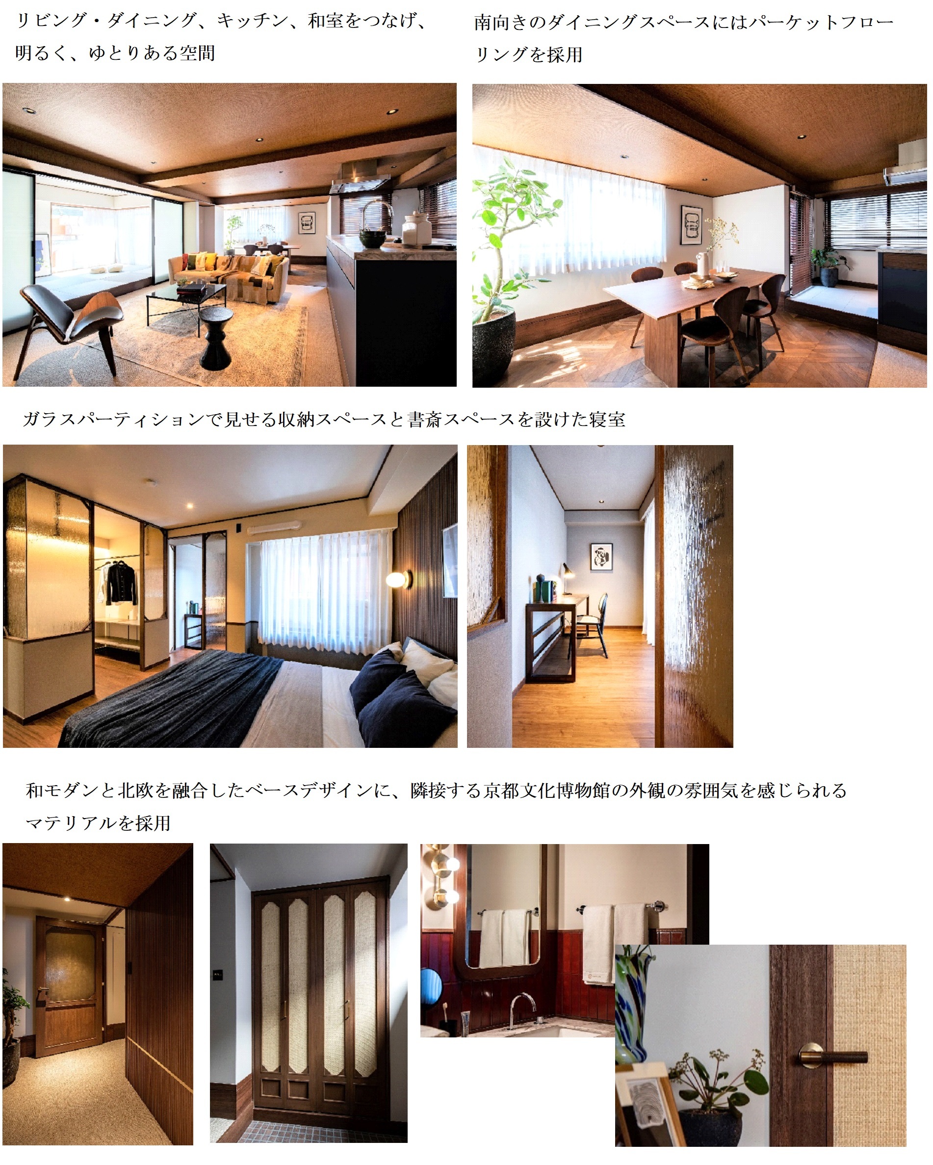 『三条高倉アーバンライフ』は、京都で「田の字」エリア※とよばれる京都中心地の人気の高いエリアに位置し、利便性を備えながら、近隣には京都文化博物館(旧日本銀行京都支店)や六角堂など歴史的な建造物などもあり、京都の豊かな文化や情緒を感じることができる、利便性と伝統を保ち続ける三条通りに面しています。首都圏などからのセカンドハウスとしてのニーズにもお応えするエリアであるため、話題のカフェやホテルを数多く手がけるトランジットジェネラルオフィスとともに、ディテールにこだわり、和洋折衷で重厚感のある落ち着いた空間へとリノベーションしました。