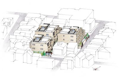 『イニシアテラス代々木上原』外観完成予想CG         『イニシアテラス小竹向原』外観完成予想CG