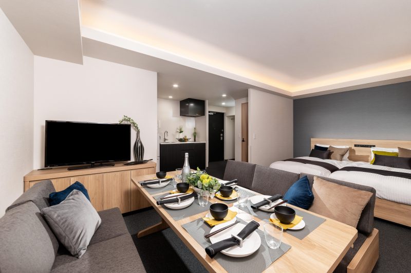 「APARTMENT HOTEL MIMARU(アパートメントホテルミマル)」では、2019年12月から東京・京都の施設にて、オリジナルデザイン「ポケモンルーム」を提供しています。広い客室内には食器や調理器具などを常備しているため、ご家族や友人とパーティをするなど思い思いのお時間をお過ごしいただいています。