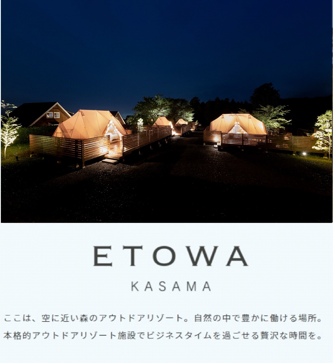 withコロナ・afterコロナの多様化する働き方に対応する新たな提案 | 茨城県笠間市との公民連携事業・アウトドアリゾート『ETOWA KASAMA』で | チームで健康的・創造的に働ける場となる『OUT WORK』を提供開始