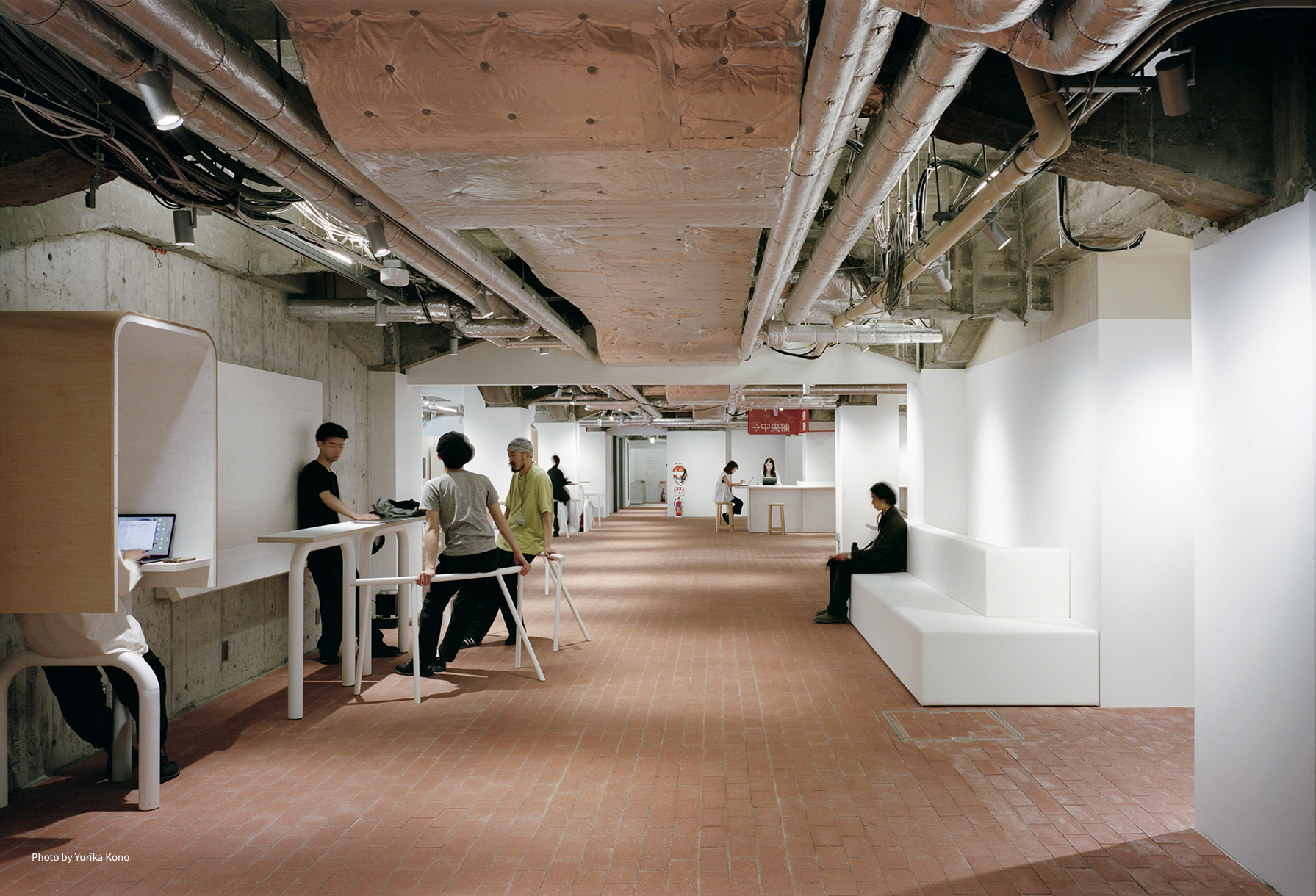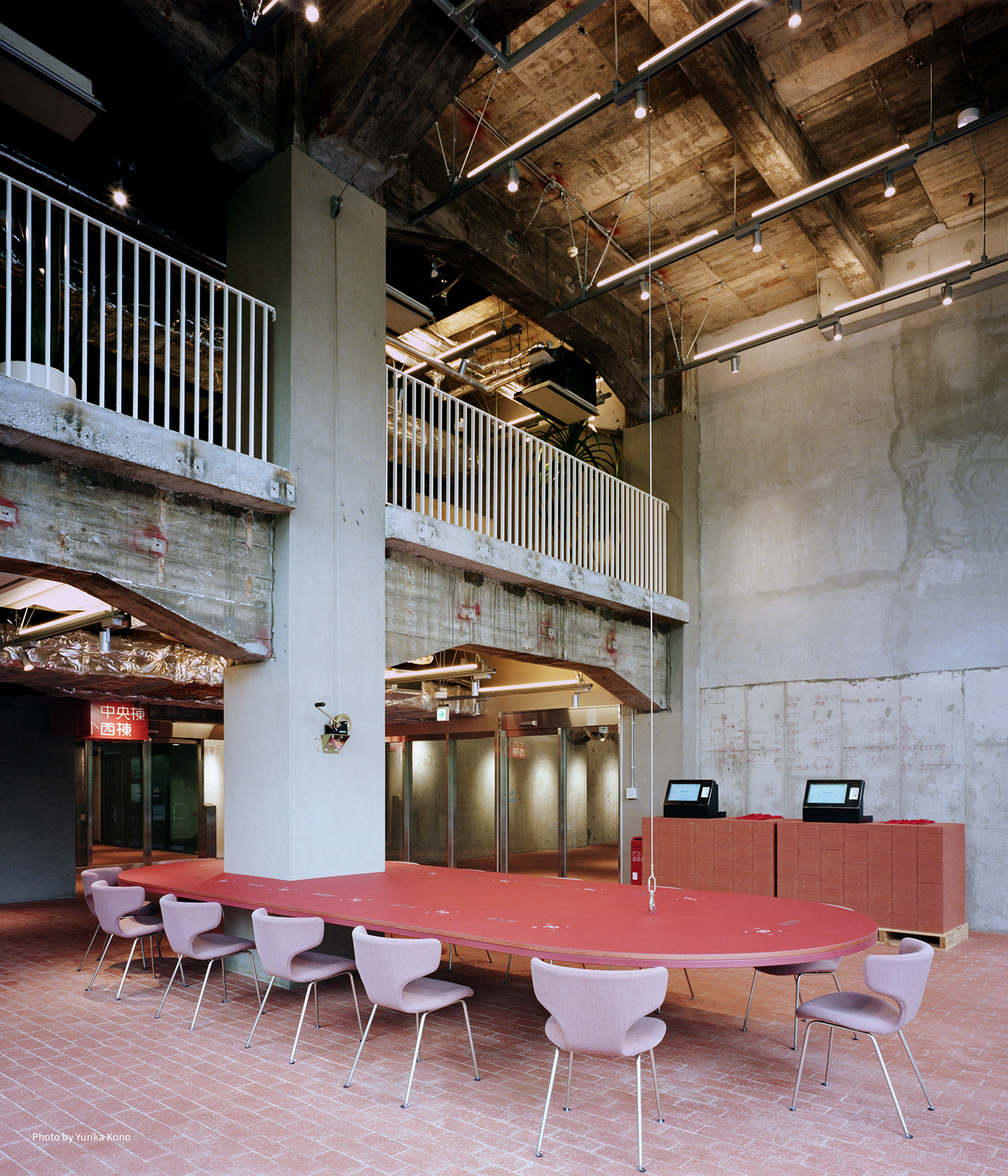• レベルも入口も異なる5棟の建物の1階部分とその周辺をレンガでつなげ、ゆるやかに室内外と各棟をつなげた
