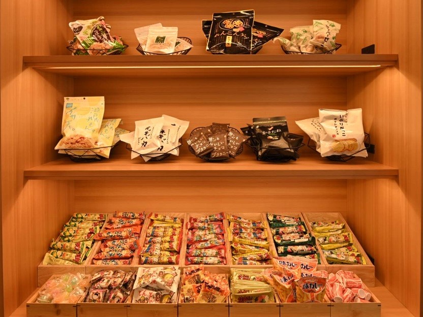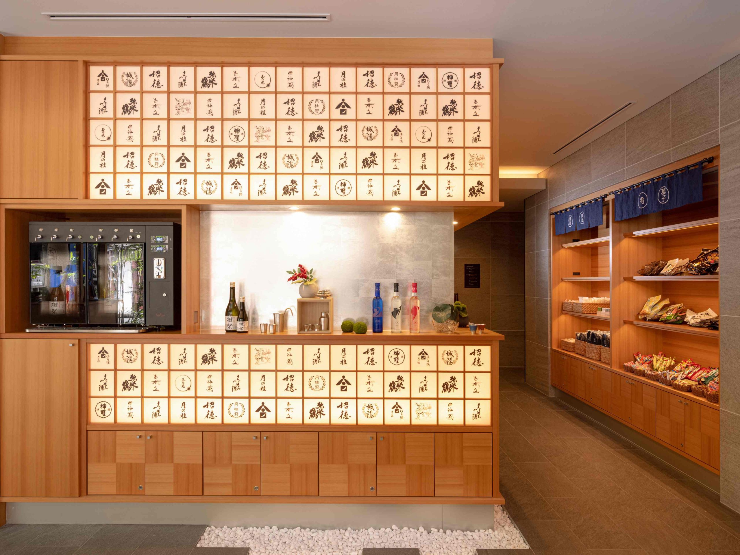 1階のロビーフロアの一角にある「IZAKAYA」では、SAKEサーバーによるチョイ飲みや駄菓子の詰め放題が体験できます※1。角打ちのようなオープン空間なので、日本文化や懐かしさを感じながら、ゲスト同士やフロントスタッフと、旅先ならではの会話が弾むこともあるかもしれません。