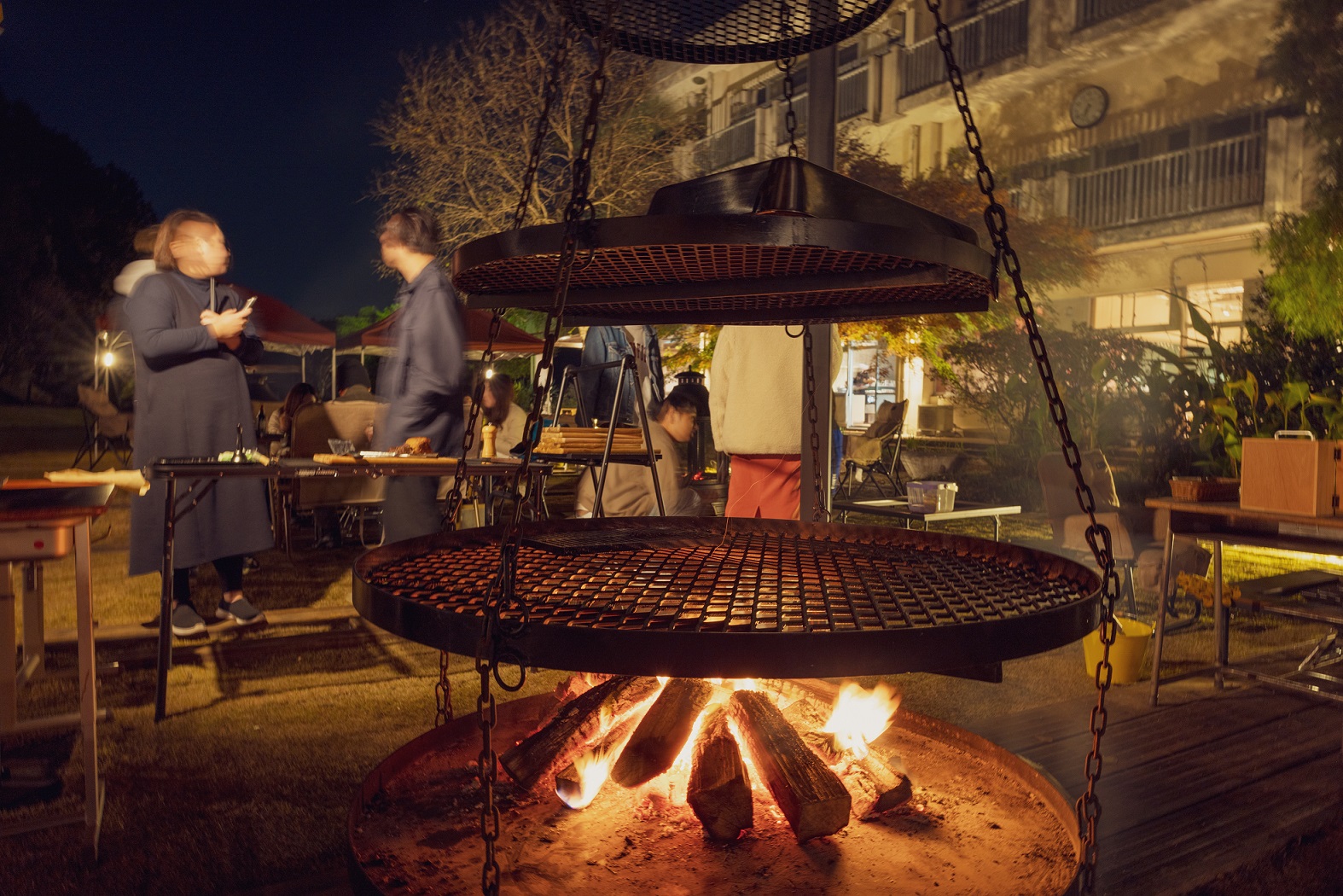 「放課後ビアガーデン」では、オーガニック食材や酒類の販売等を行う木更津市内の事業者「BEARS」による食事や飲料の提供、木更津市出身のシンガーソングライター松本佳奈氏の音楽ライブ、また、通常は宿泊者のみが利用できるオリジナルピットで行う大迫力のBBQや、木更津市で展開している「会と話by THE COFFEE」のコーヒーをご用意いたしました。