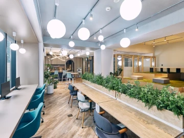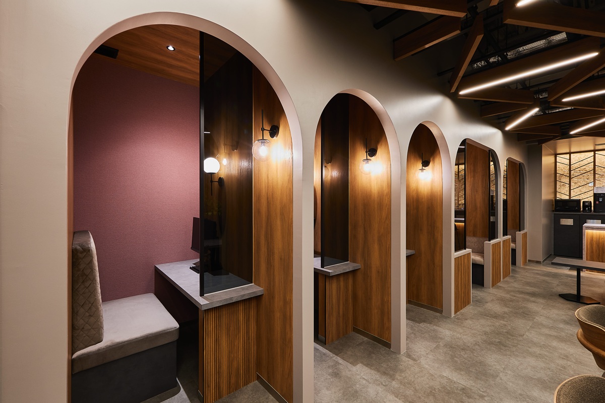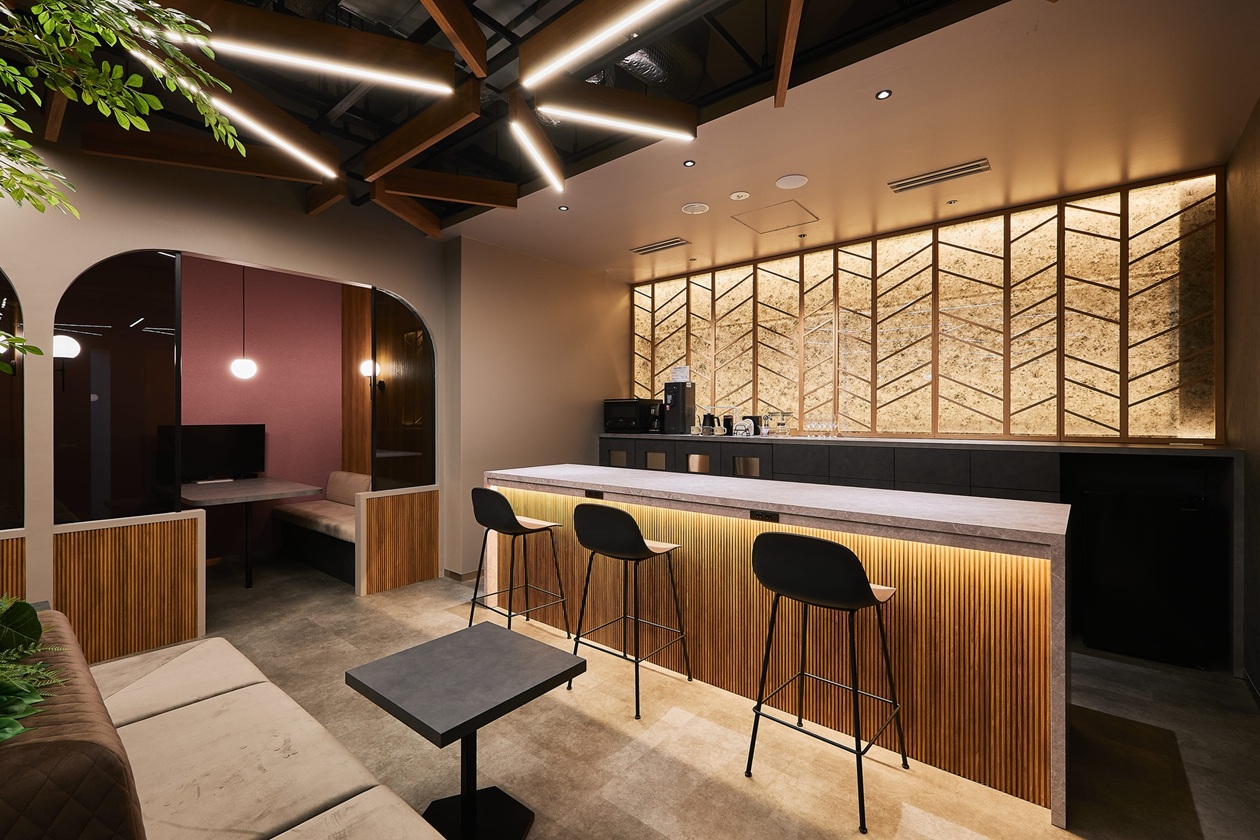 施設デザインは、調和と連続性を象徴する六角形=“ロンバス”をモチーフに構成。多様な働き方に対応し、人と人とのつながりを生み出すレイアウトを採用。集中・交流・休憩の各シーンへの切り替えがしやすい空間となっています。