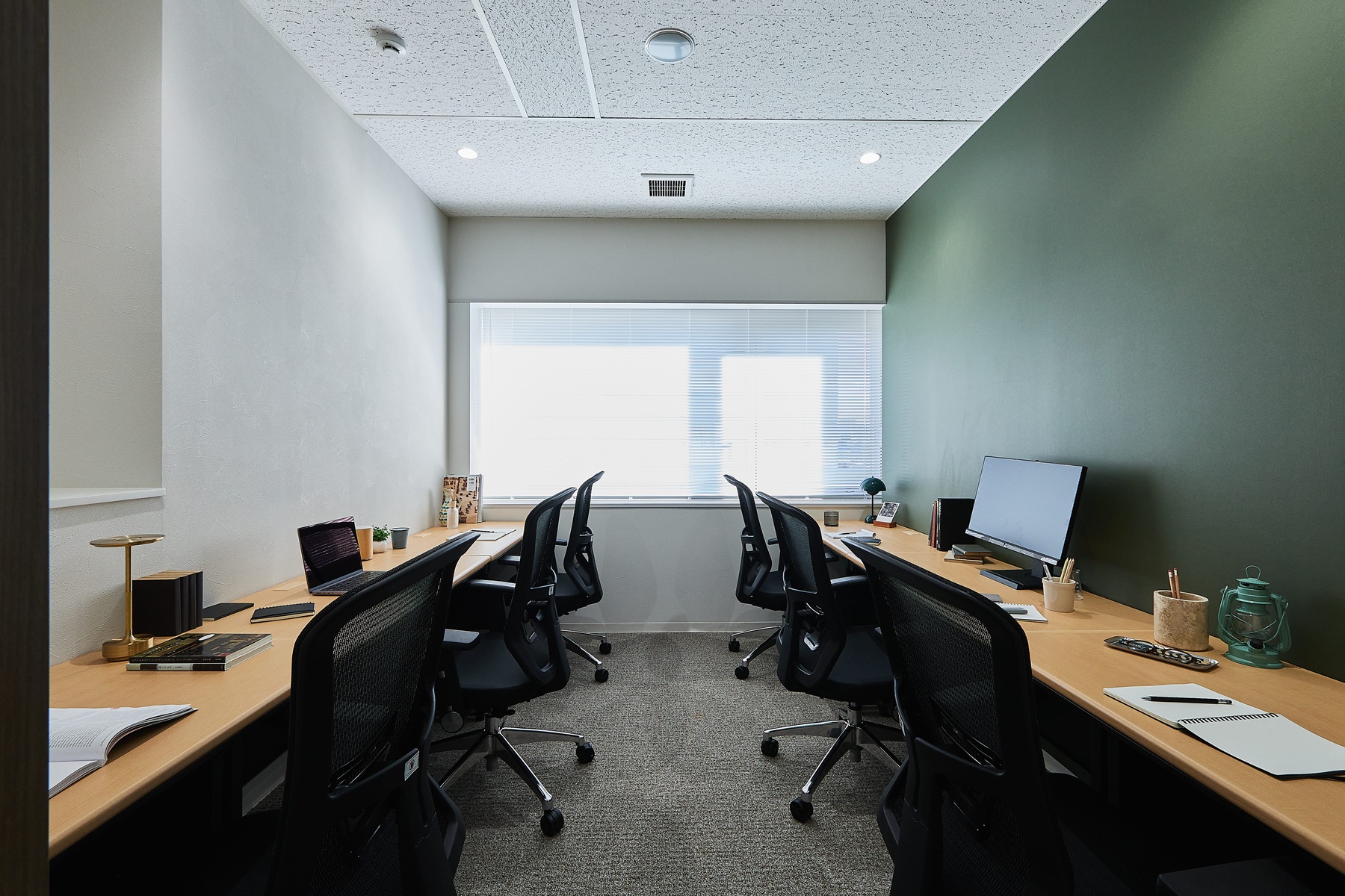 オープンスペースと個室の仕切りには、あえてドアではなく「のれん」を採用。視線や気配がほどよく行き交う設計により、集中・交流・リラックスを自然に切り替えられる、どこか温かみのあるオフィス空間を実現しました。