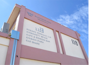 昔のひばりが丘団地テラスハウス118号棟をリノベーションした建物であることから、「ひばりテラス118」と名付けました。