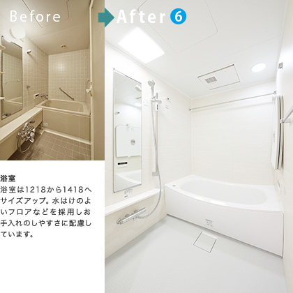 新築マンション仕様の設備を採用しているのは、住まう方の目線に立った配慮を積み重ねていくことで、住み心地のよさが高まると考えているからです。洗面化粧台であれば、鏡は天井の高さに、横幅は空間にピタリと合うようにしつらえます。それが中途半端なサイズの規格品だと、決してキレイには仕上がりません。安価ではあるものの、見栄えや満足感は大きく違ってきます。
