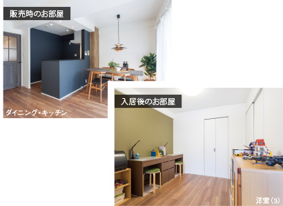 W様:実際の暮らしがイメージしやすくて、とても参考になりましたね。入居後に新調した家具は、まさに販売時に置いてあった家具の色合いを参考にしていて、レイアウトも参考にしました。