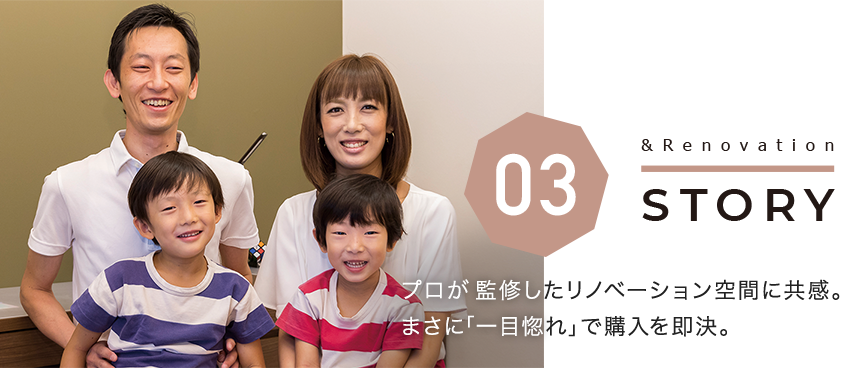 今回ご紹介するのは、「& リノベーション」で理想の住まいを実現された3家族のライフストーリー。そこに住む人だからこそ見ることのできる風景や瞬間を通じて、リノベーションマンションの魅力を感じてください。