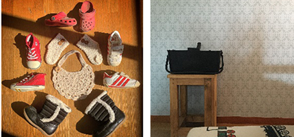 子どもが小さかった頃の靴・スタイ(よだれかけ)・靴下・ブーツで構成しました。出産祝でいただいたファーストシューズ、妊娠中に編んだ靴下とスタイは、子どもが大きくなった今でもおうちに飾っており、そんな思い入れのあるグッズたちが集まった素敵な壁紙となりました