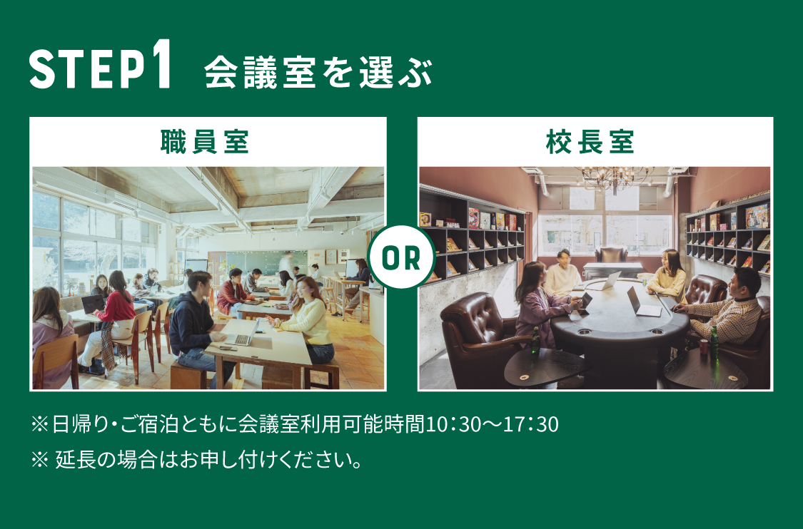 童心に帰って見つける無邪気なアイデア。おしゃべりが止まらない楽しい会議。なつかしの校舎が仕事の刺激になる。会議や作業に必要な設備や備品も、きちんとご用意しています。