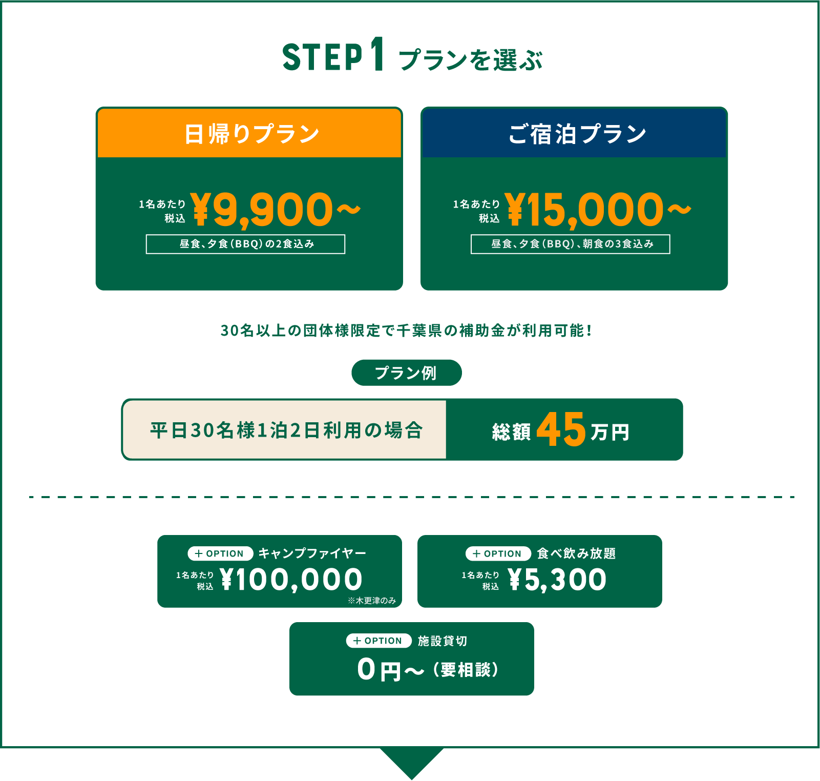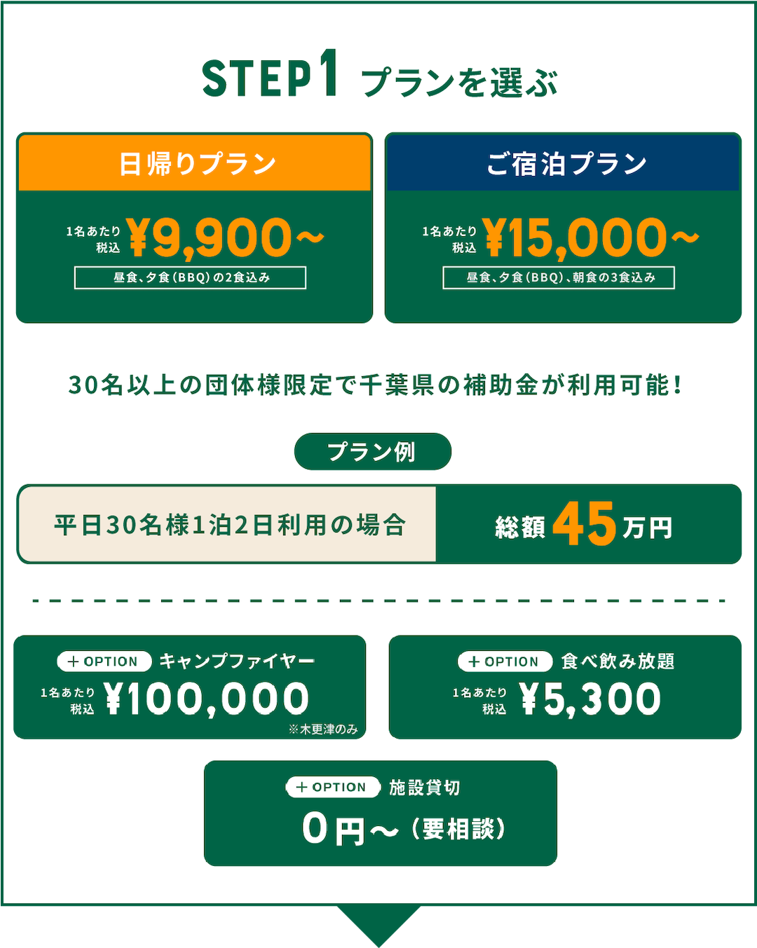 地元木更津の食材で楽しむBBQは手ぶらでOK、雨天も大丈夫。食べ・飲み放題。120種類以上のドリンクで乾杯。将来の夢でも、好きな子の話でも。思い思いの夜を過ごしてみてください。