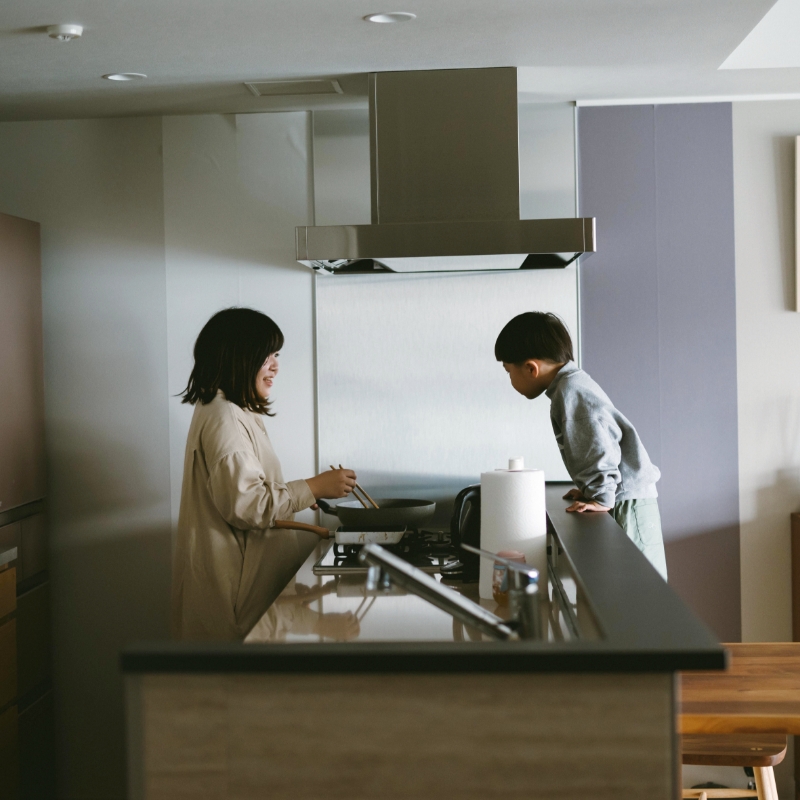 柱の存在を意識させない、すっきりした空間の設計を心がけています。柱がなくなると家具のレイアウトが自由になり、デッドスペースも生まれにくくなります。