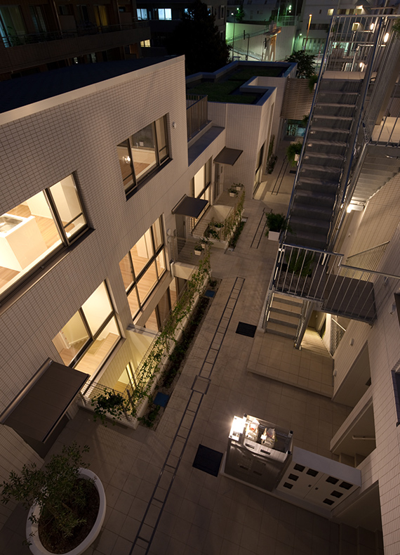 各住戸へと繋がるコミュニケーションコリドー。