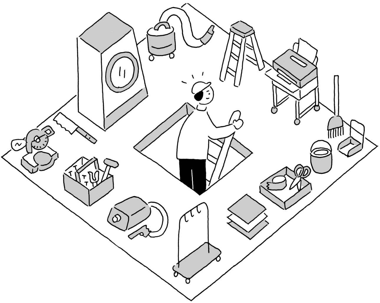 そんな掃除道具や工具類を集めたシェアツールボックスがマンション1階にあれば、部屋の中はもっとすっきり。
