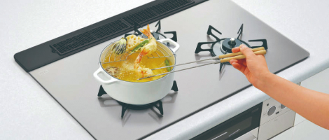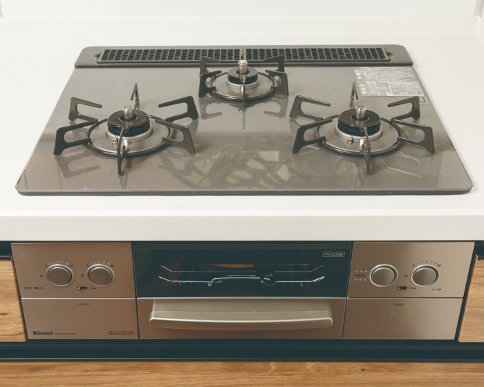 調理油過熱防止や消し忘れ消化機能など、安心してお料理が楽しめるSiセンサーコンロを採用。天板は汚れが付きにくくお手入れが簡単なガラストップコンロを採用しています。