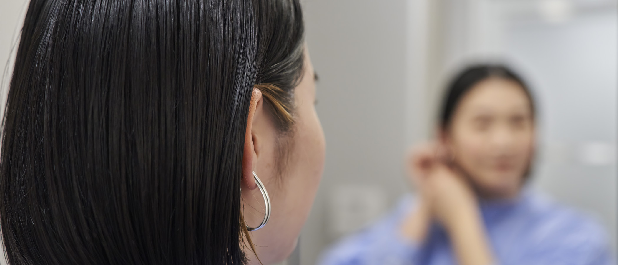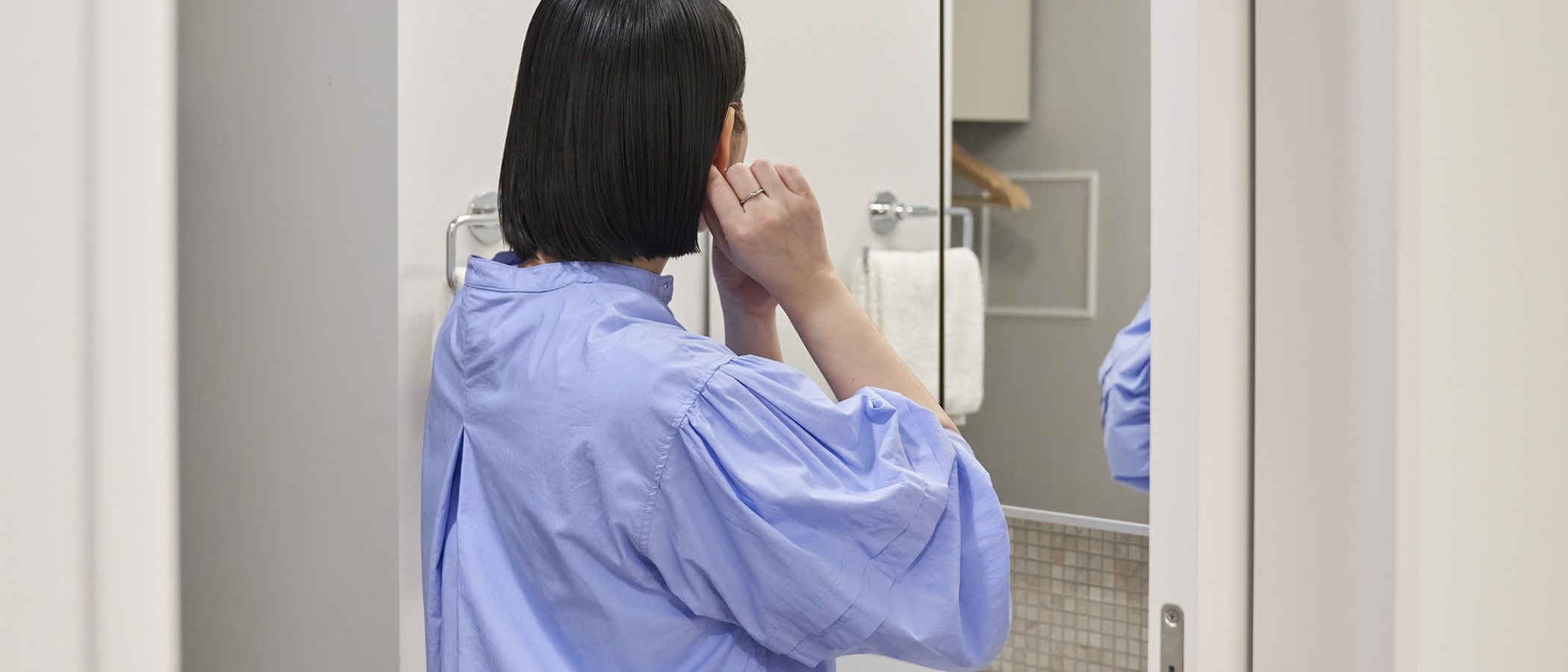 洗面鏡の下部には、小さなお子さまも使えるようチャイルドミラーを設置しています。