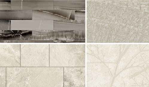 左上:アクセントタイル/左下:エコカラット/右上・右下:アクセントクロス