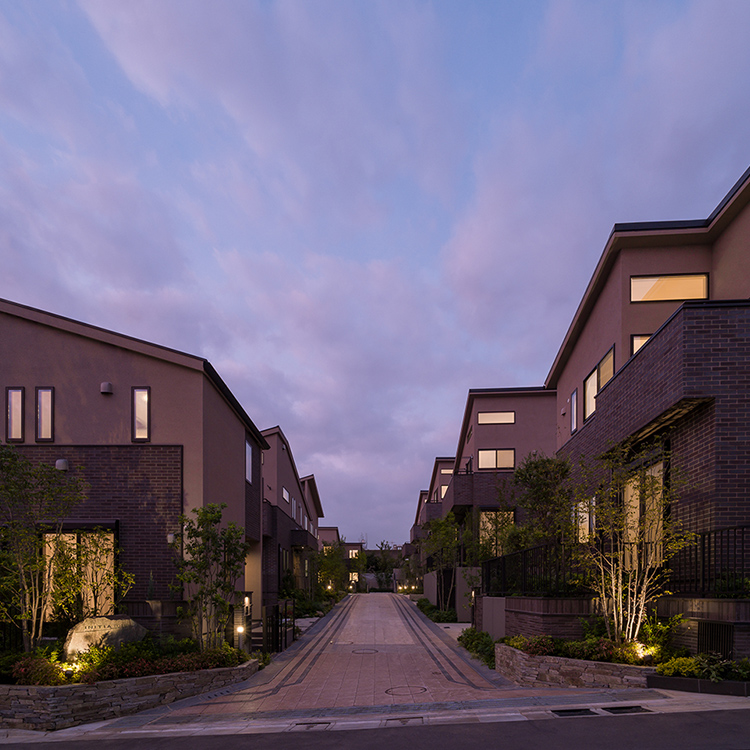 街並みは、一軒の住まいだけでは生まれません。また風景とは家の集合ではありません。私たちは、単体で美しい家をつくるだけでなく、デザインのルールを設け、彩りやスカイラインにリズムや統一感を持つ街並みをつくります。さらにシンボルツリーや街路樹といった植栽で周囲とつながり、環境との調和も追求すると同時に、景観に新たな潤いを創造します。
