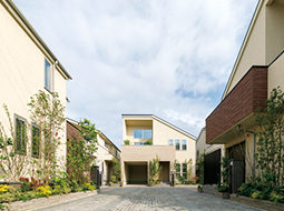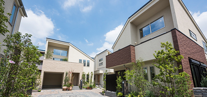 ※3 街並みは、一軒の住まいだけでは生まれません。また風景とは家の集合ではありません。私たちは、単体で美しい家をつくるだけでなく、デザインのルールを設け、彩りやスカイラインにリズムや統一感を持つ街並みをつくります。さらにシンボルツリーや街路樹といった植栽で周囲とつながり、環境との調和も追求すると同時に、景観に新たな潤いを創造します。