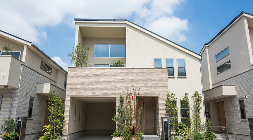 ※1 街並みは、一軒の住まいだけでは生まれません。また風景とは家の集合ではありません。私たちは、単体で美しい家をつくるだけでなく、デザインのルールを設け、彩りやスカイラインにリズムや統一感を持つ街並みをつくります。さらにシンボルツリーや街路樹といった植栽で周囲とつながり、環境との調和も追求すると同時に、景観に新たな潤いを創造します。