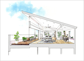 イメージイラスト 勾配屋根で、街並みにリズムを、
