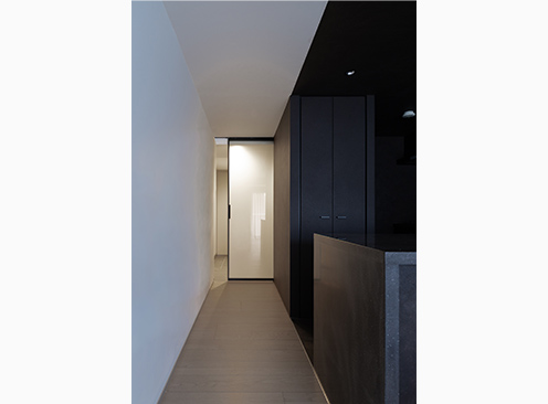 エントランスに立つと、視線は奥へと真っすぐ導かれ、必要最小限に抑えられた廊下が、その伸びやかな広がりをいっそう際立たせます。空間に満ちる静謐な豊かさが、住まいの品格を静かに引き出します。