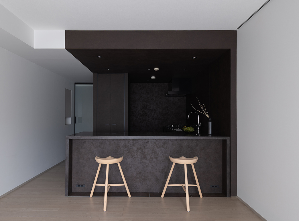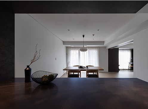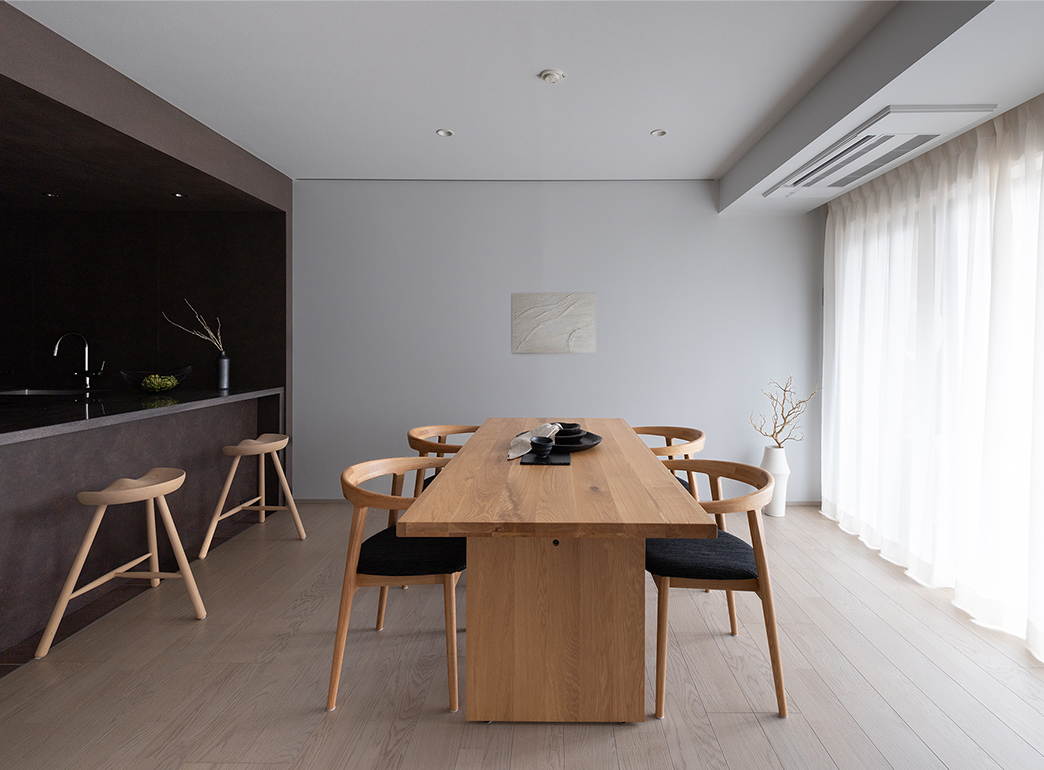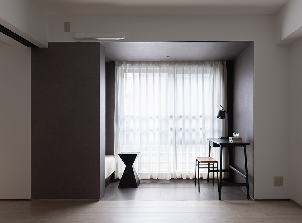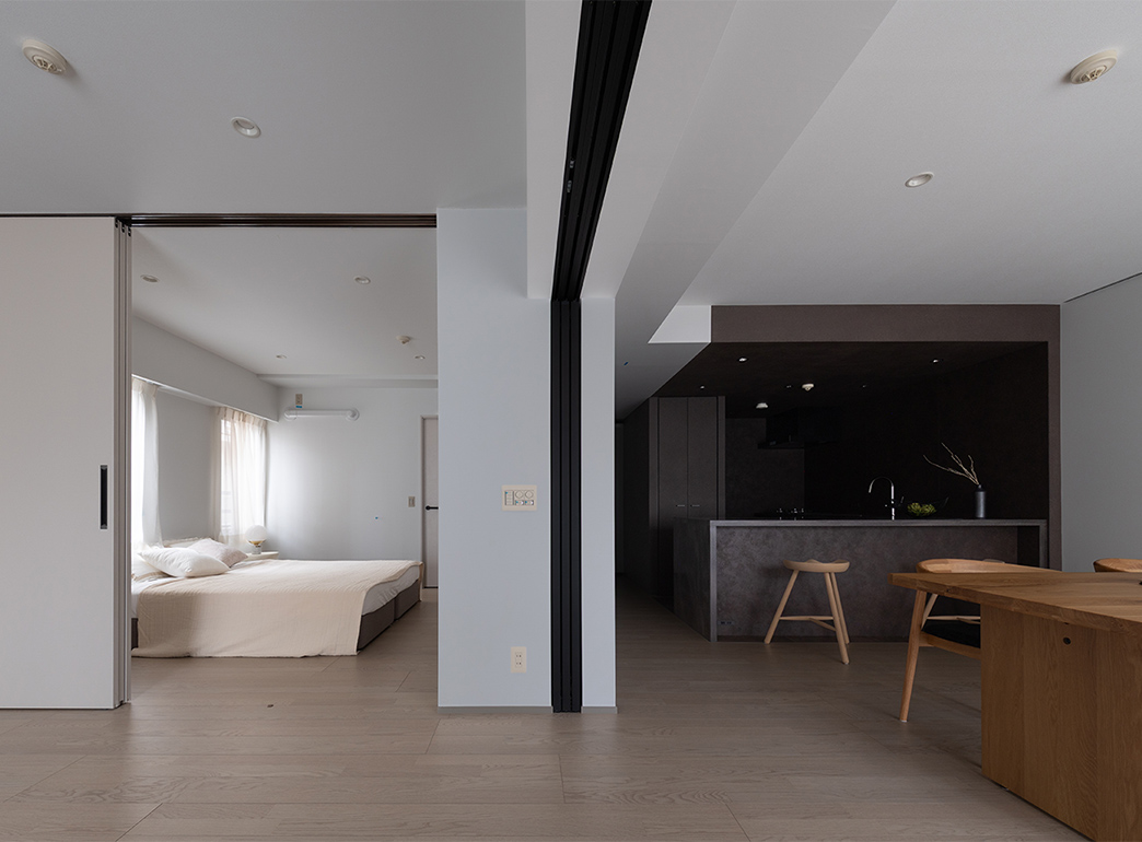 都市の中心にありながら、静けさをまとうこの住まいは、空間を区切らず、あいまいさを残すことで、住まい手に自由な想像を広げる余白を生み出します。