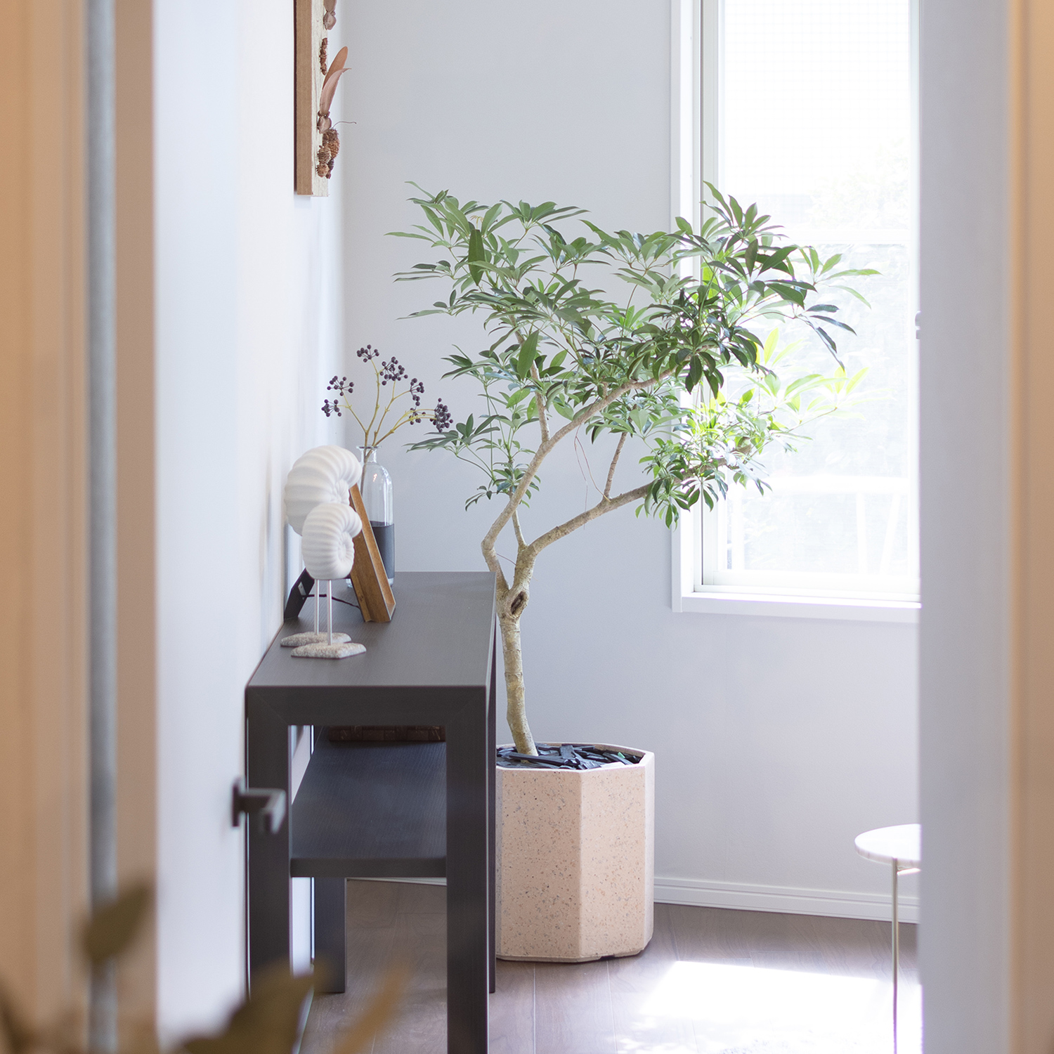 当初は庭付きの家を探していたくらい緑に囲まれた暮らしに憧れがありました。またお気に入りのお花屋さんでお花を買って、家に飾るのが大好きだったので、入居時にパーカーズさんセレクトの育てやすくお部屋に合ったお洒落な植物をプレゼントしてもらえたことも嬉しかったです。