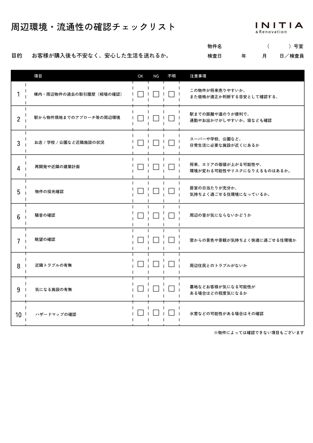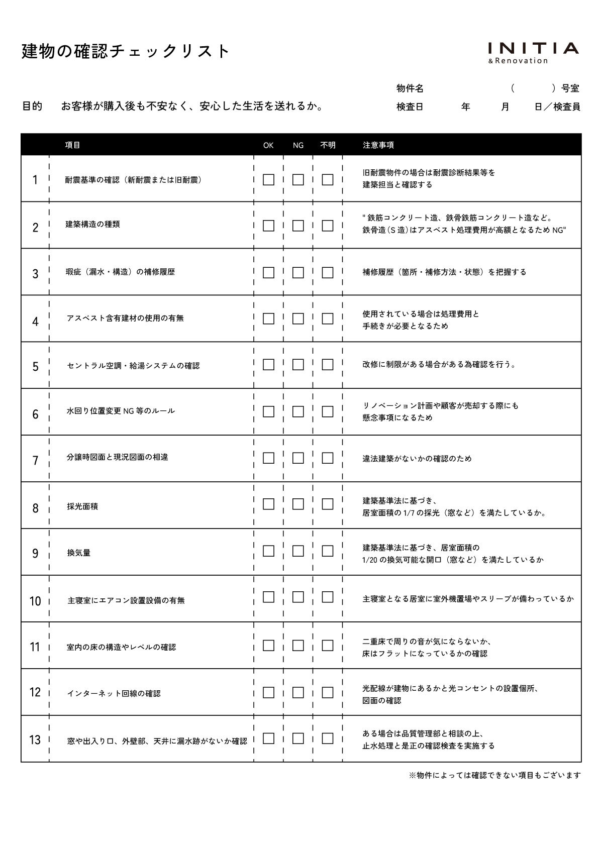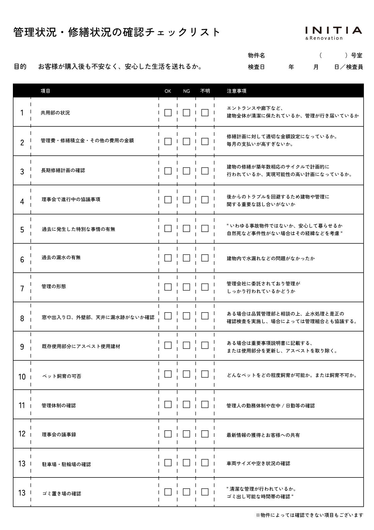 ※チェック項目は物件により異なる場合があります